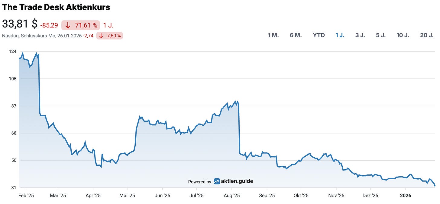 Ich hatte Anfang Januar eine kleinere Einstiegsposition an TTD 0.00%↑ erworben und eigentlich sollte das der Start in einen sehr langfristig angelegten Investment Case sein.